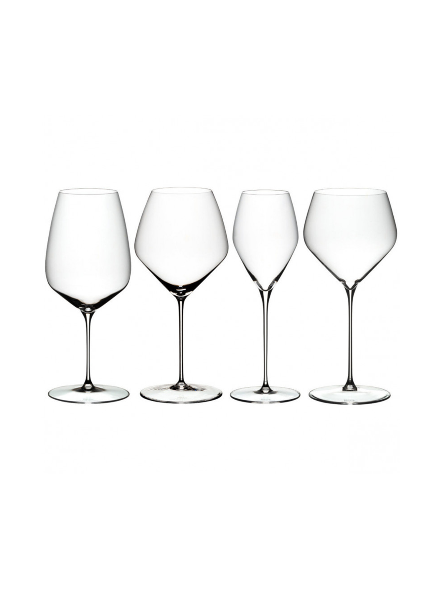 Das Riedel Veloce Tasting Set besteht aus 2 Rotwein- und 2 Weissweingläsern in unterschiedlichen Glasformen: Pinot Noir und Cabernet sowie Sauvignon Blanc und Chardonnay. Die Form und Grösse beeinflussen den Weinausdruck und Ihre Wahrnehmung von Aroma und Geschmack. Jedes Glas wurde in einem Riedel Sensorik Workshop entwickelt, um bestimmte Rebsorten hervorzuheben und auszubalancieren.