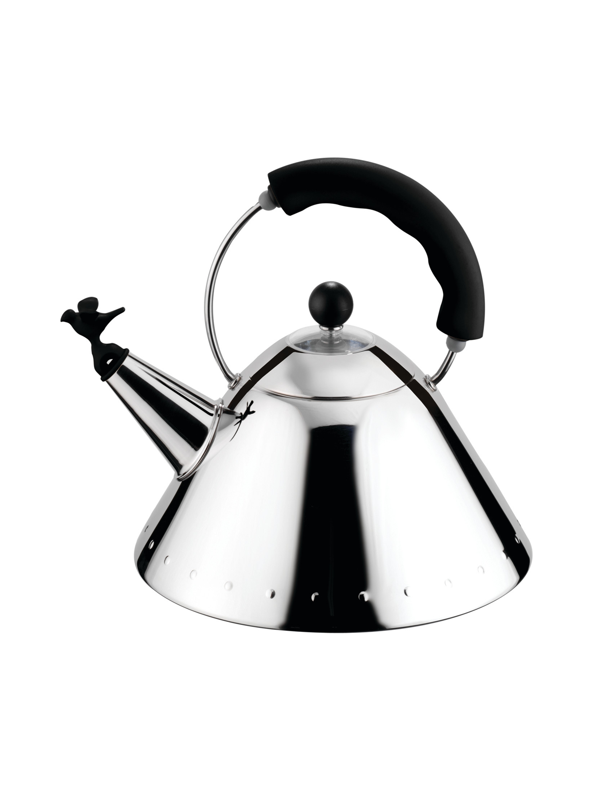 Der Alessi Wasserkessel 9093 ist ein vogelgeformter Wasserkocher aus hochwertigem Edelstahl und hebt sich als absolutes Design Highlight von herkömmlichen Wasserkochern ab. Er wurde 1985 vom renommierten Designer Michael Graves entworfen und verbindet kultivierte Einflüsse europäischer Kunst sowie amerikanischen Pop und präkolumbianische Kulturen.