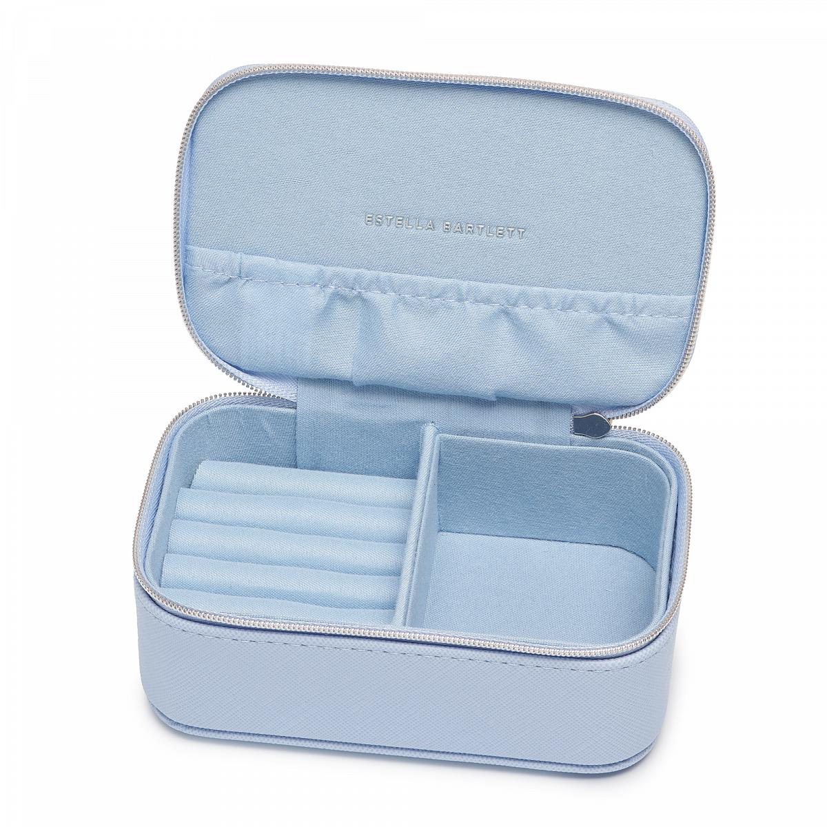 Die praktische Mini-Schmuckbox "Precious Things" in blau ist das perfekte Reiseaccessoire. Bewahre deinen Lieblingsschmick auf elegante Weise auf. Mit organisierten Fächern für deine Ohrringe, Armbänder und Halsketten ist diese kleine Schachtel perfekt für unterwegs geeignet.