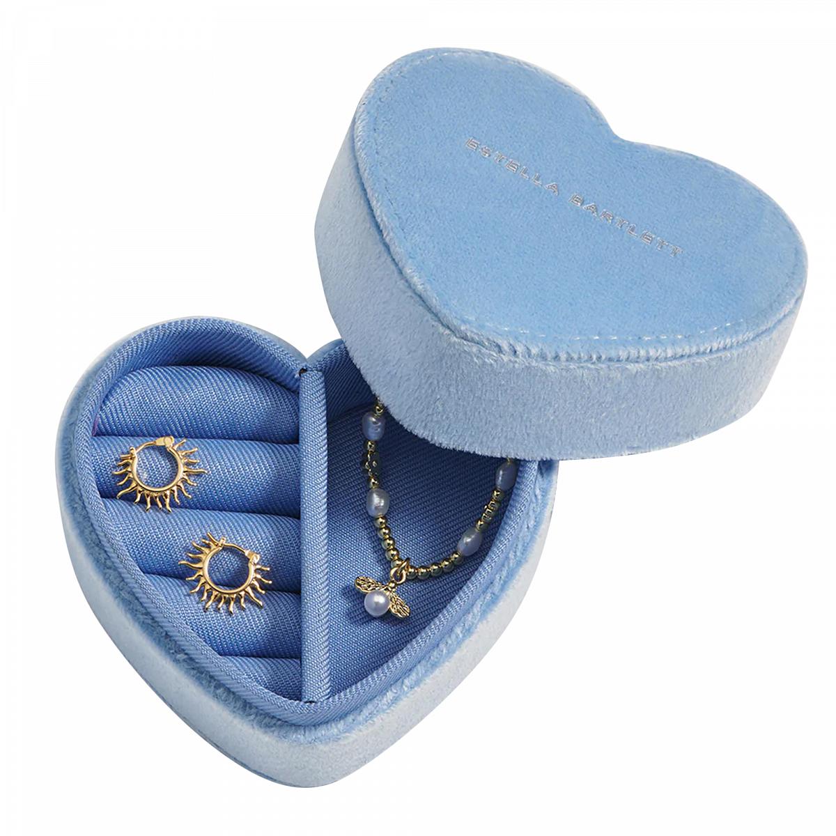 Schmuck-Liebhaber*innen aufgepasst! Unsere niedliche blaue Mini-Herz-Schmuckbox verfügt über zwei Fächer, um deine Ringe, Halsketten, Ohrringe und Armbänder sicher aufzubewahren. Dank ihrer praktischen ultra-petite Grösse ist sie das perfekte Reiseaccessoire, um deine liebsten Schmuckstücke mitzunehmen.