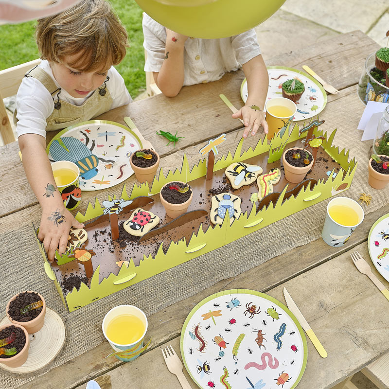 Decke deinen Tisch für die Käferjagd mit diesem Käferjagd Buffetbrett mit Pop Up Käfern. Falls du kleine Entdecker zuhause hast, werden sie diese Kollektion lieben, die mit Naturmotiven, kräftigen Farben und viel Spass begeistert! Jede Packung enthält: ein Buffetbrett , eine ausgeschnittene Zeltkarte mit "Welcome to the bug hunt!" beschriftet, 7 Pappwanzen in verschiedenen Grössen und 8 Klebepads in unterschiedlichen Grössen.