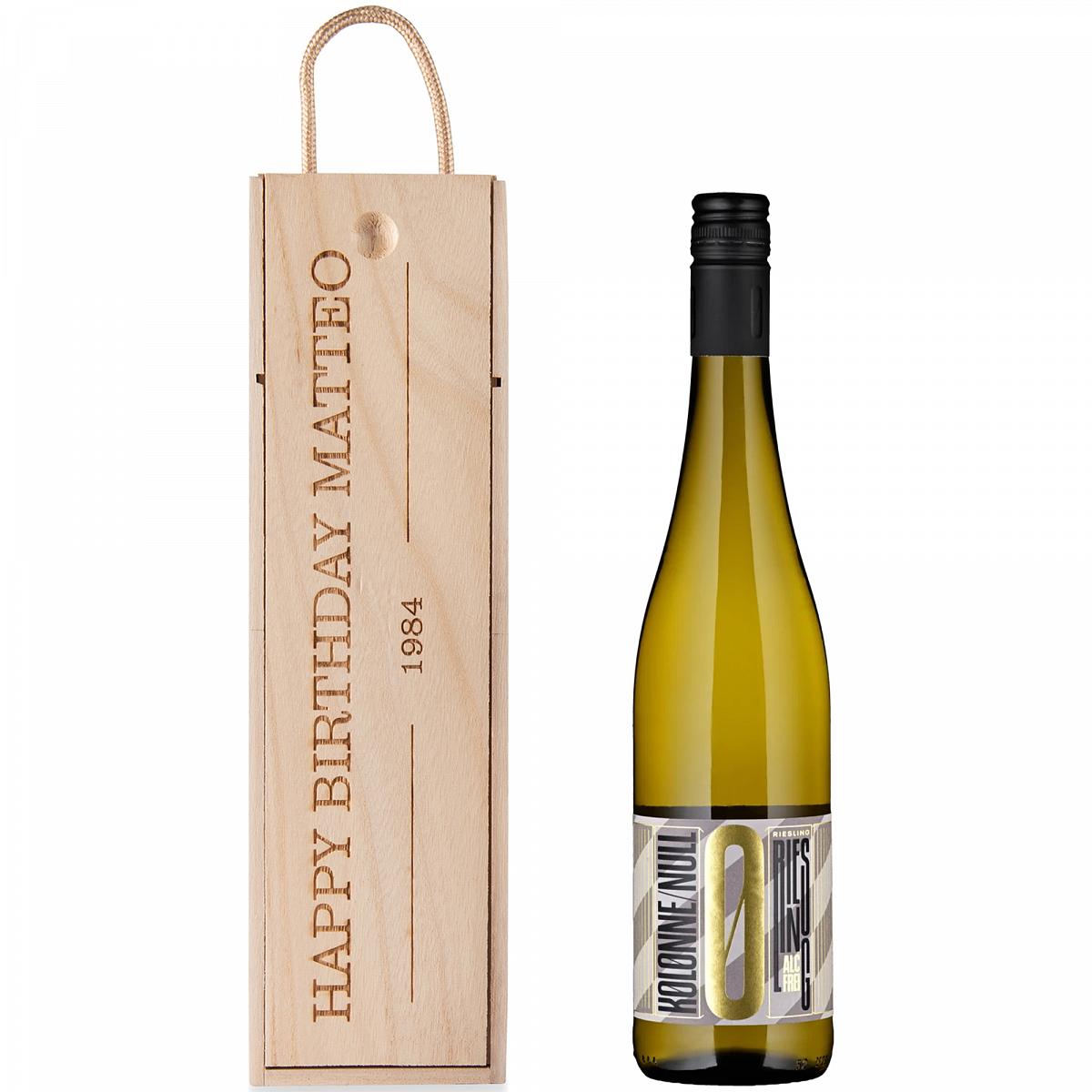 Personalisierbare Weinkiste mit Kolonne Null Riesling 0,0% Vol
