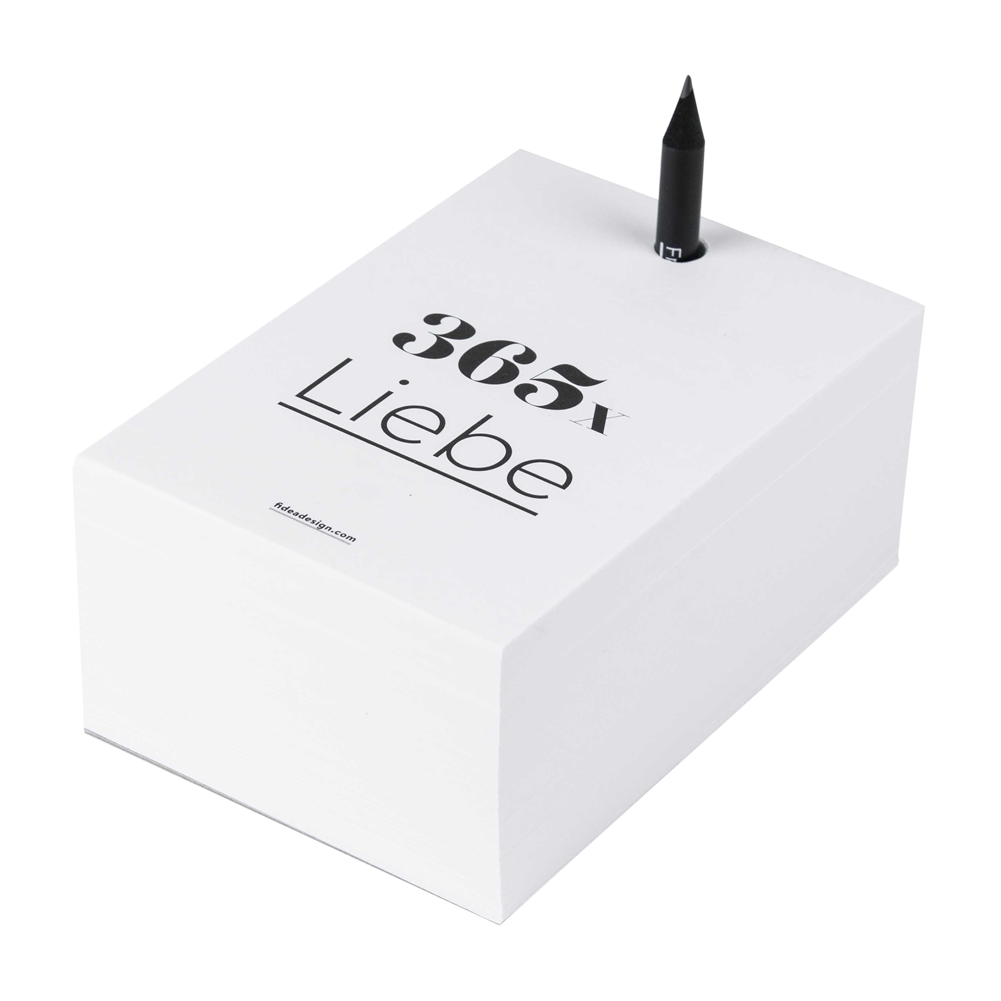 Nutzt den Abreissblock 365 x Liebe und lasst euch jeden Tag mit einer kleinen Nachricht überraschen. Ob Komplimente, Erinnerungen, Liebesgeständnisse oder Entschuldigungen - diese wenigen Worte können euren Alltag verschönern und sowohl frisch Verliebten als auch langjährigen Paaren Freude bereiten.