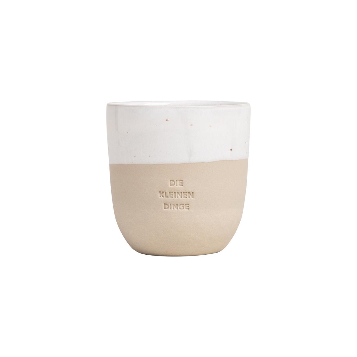 Entdecke den Becher "Die kleinen Dinge" für besondere Momente. Ideal für entspannte Kaffes oder um einen Tee zu geniessen. Sein schlichtes Design und die natürliche Farben machen ihn zu einem tollen Blickfang. Er wurde liebevoll in einer Töpferei in Portugal handgefertigt und besticht durch seine Einzigartigkeit.