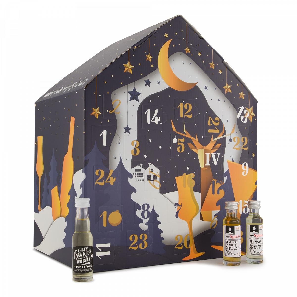Der Whisky Adventskalender 2025 enthält 24 verschiedene Whiskys aus internationalen Herkunftsländern. Die Abfüllungen befinden sich in kleinen Glasflaschen. Enthalten sind unter anderem Aberfeldy 16 Years Single Malt Whisky aus Schottland, Fujimi Blended Japanese Whisky aus Japan und The Quiet Man 8 Years Single Malt Whisky aus Irland.