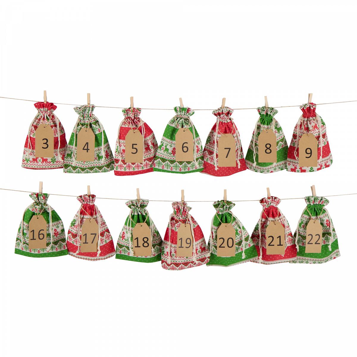 - 24 Säckchen mit aufgedruckten Zahlen 1 - 24