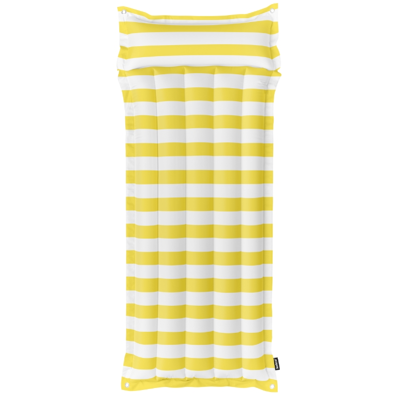 Diese gestreifte Luftmatratze in der Farbe Lemon, ist das ideale Accessoire für den Sommer! Mit ihrem stilvollen Design und ihrer robusten Konstruktion bietet sie sowohl im Pool als auch am Strand maximalen Komfort und Spass. Geniesse sonnige Tage und entspannte Stunden auf dem Wasser mit dieser luftigen Begleitung.