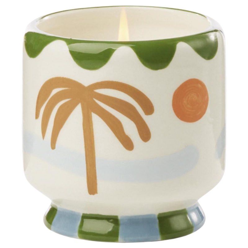 Diese Duftkerze A Dopo - Lush Palms bringt dir das sommerliche Flair zu dir nach Hause. Das schwere Keramikgefäss ist kunstvoll handbemalt und in lebendigen Farben gehalten. Geniesse den abenteuerlichen Duft und verwandel das Gefäss nach dem Abbrennen in eine dekorative Vase für deine nächste Gartenparty! Ein perfektes Geschenk für Reiseliebhaber und Keramikfans.