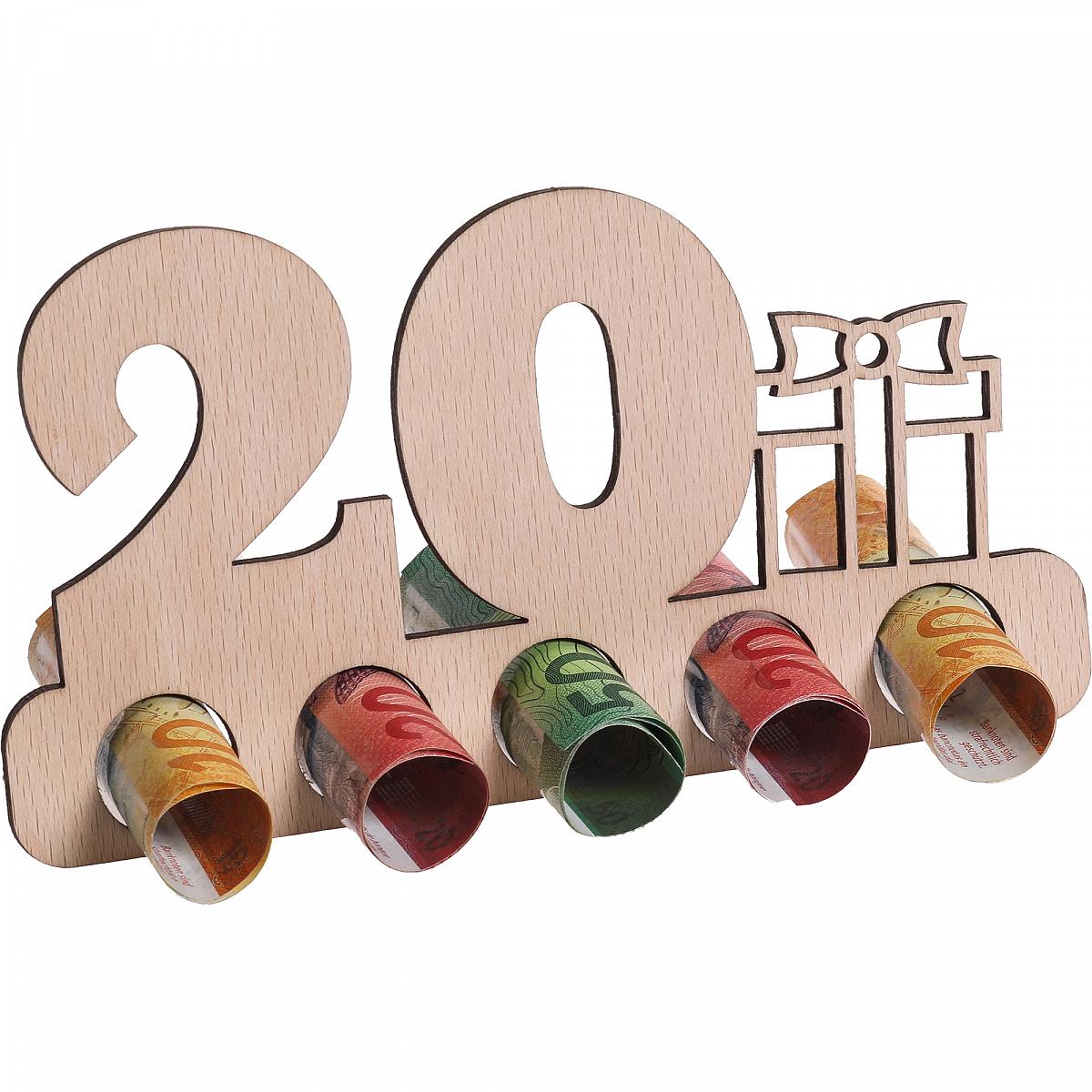 Für den 20. Geburtstag bieten wir unser Geldgeschenk aus Holz an. Dieser Holzaufsteller ist nicht nur stilvoll, sondern auch eine originelle Möglichkeit, Geldgeschenke zu überreichen. Ein perfektes Geschenk für diesen besonderen Anlass, das garantiert in Erinnerung bleibt!