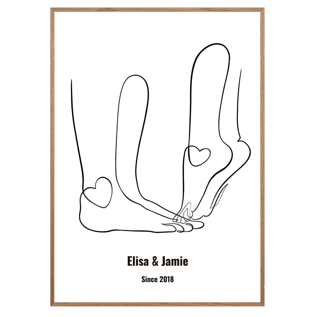 Personalisiertes Poster Füsse A3, Rahmen Eiche