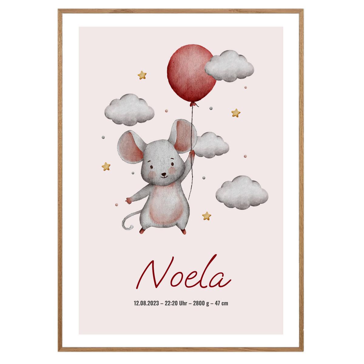 Personalisiertes Geburtsposter Baby Maus A3, Rahmen Eiche
