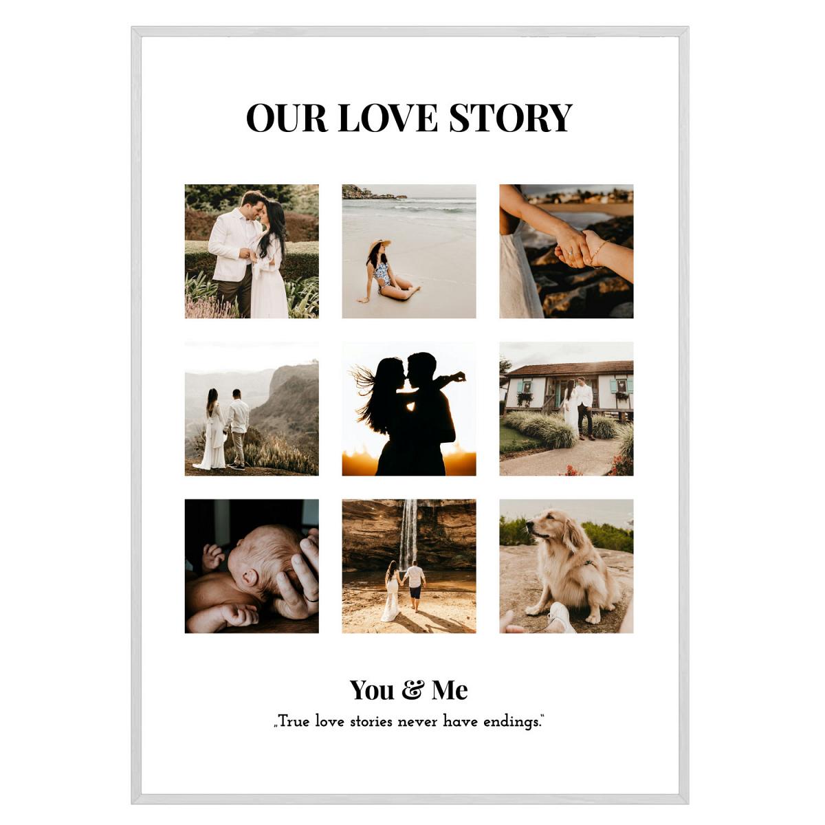 Personalisiertes Foto Poster Lovestory A3, Rahmen weiss
