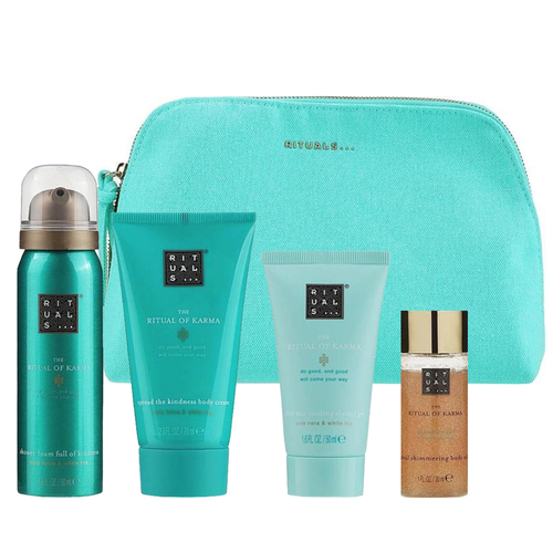 Das Rituals Karma Set Necessaires enthält Pflegeprodukte, die deinen Körper und Geist harmonisieren. Mit dem beruhigenden Duft von Lotusblüten und weissem Tee, alles stilvoll verpackt in einer praktischen Tasche. Perfekt, um dir oder jemand Besonderem eine Freude zu machen.