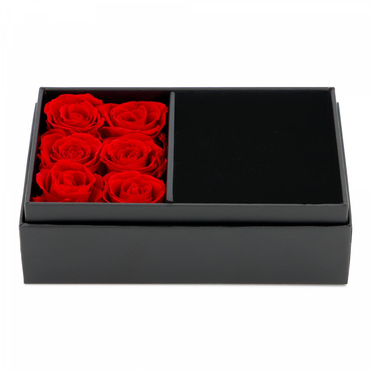 - Inhalt: 6 konservierte Rosen und Samtfach für Schmuck