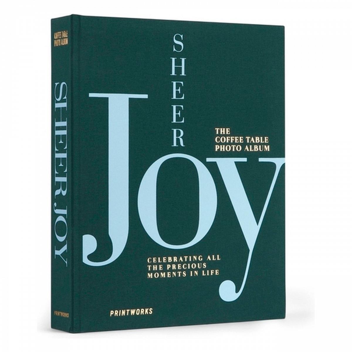 Entdecke unser Printworks - Sheer Joy mit einem eleganten, dunkelgrünen Stoffeinband und blau geprägtem Text. Im Inneren findest du 30 Seiten hochwertiges schwarzes Fotopapier, auf dem du deine Fotos mithilfe unserer separat erhältlichen Aufkleber ganz einfach befestigen kannst. Das Album bietet Platz für zwei 10x15 cm grosse Fotos pro Seite und darunter Raum für persönliche Notizen.