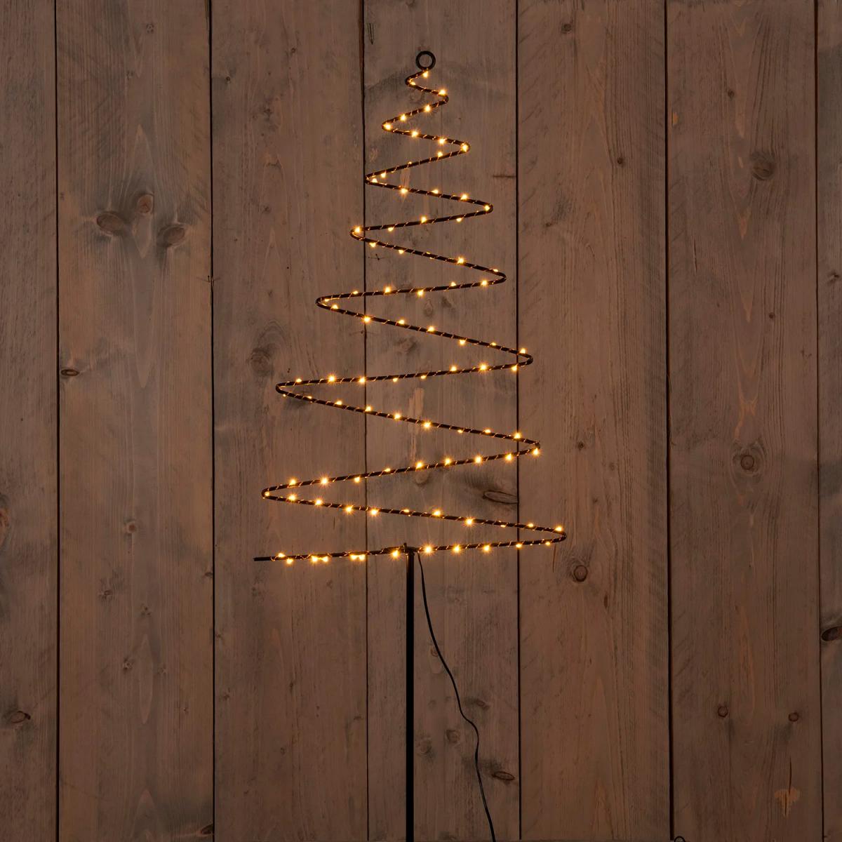 Erhelle die dunklen Winternächte mit einem stilvollen LED-Weihnachtsbaum in Deinem Garten. Dieser Outdoor-Lichterbaum ist auf einem stabilen Gartenstecker montiert, den Du einfach in den Boden stecken kannst. Mit 108 cm Höhe und 88 warmweissen LED-Lichtern schafft er eine gemütliche, festliche Atmosphäre. Tagsüber fügt sich der schwarze Baum dezent in die Umgebung ein und am Abend erstrahlen nur die Lichter. Kombiniere ihn mit weiteren Bäumen oder Lichterketten, um Deinen Garten in eine wunderschöne Weihnachtslandschaft zu verwandeln.