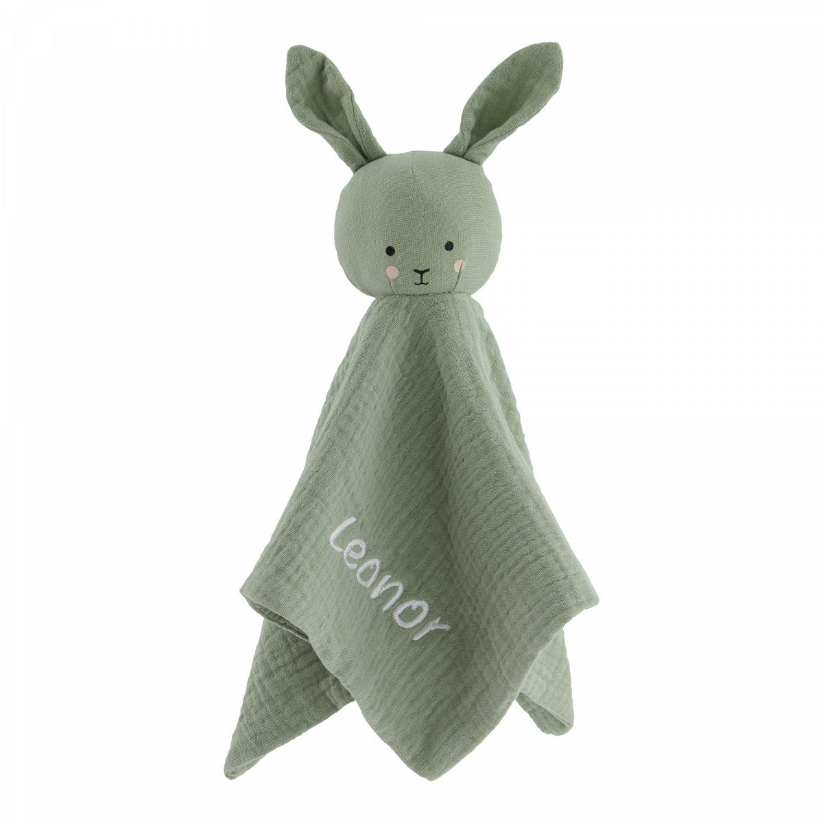 Personalisierte Schmusedecke Hase salbei