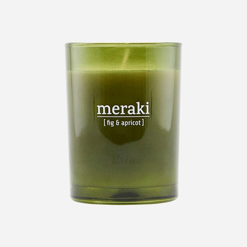 Gönn dir ein entspannendes Bad und geniesse die stimmungsvolle Atmosphäre, die nur Duftkerzen erzeugen können. Die kleine Kerze von Meraki namens Fig & Apricot verströmt Noten von Feigen und Aprikosen mit einem süssen, fruchtigen Hauch. Nutze sie auch im Wohnzimmer und geniesse einen gemütlichen Abend. Dank des grünen Glases fügt sich die Duftkerze auch natürlich in deine Wohnkultur ein. Die Kerze hat eine Brenndauer von 12 Stunden.