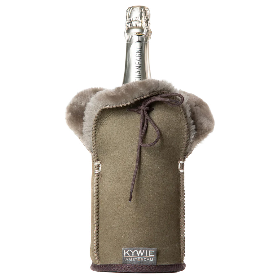Der Kywie Champagnerkühler Khaki Suede ist der ideale Begleiter für elegante Anlässe, da er Champagnerflaschen bis zu zwei Stunden lang kühl hält – ganz ohne Eis. Hergestellt aus hochwertigem Wildleder in Khaki und isolierender Schafwolle, vereint er Funktionalität mit natürlicher Eleganz. Durch sein geringes Gewicht ist er einfach zu transportieren und auch für Picknicks oder Partys bestens geeignet.