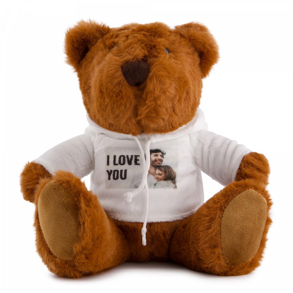 Bereite jemandem eine herzerwärmende Freude mit unserem kuscheligen Plüschteddy, der ein personalisiertes T-Shirt mit einem Foto deiner Wahl trägt. Der fluffige Teddy ist nicht nur unglaublich süss, sondern wird mit einem Foto, Design oder Text deiner Wahl auf dem T-Shirt zu einem einzigartigen Begleiter der für liebevolle Erinnerungen sorgt. Mit seinem individuellen Touch wird dieser flauschige Bär Herzen im Sturm erobern.