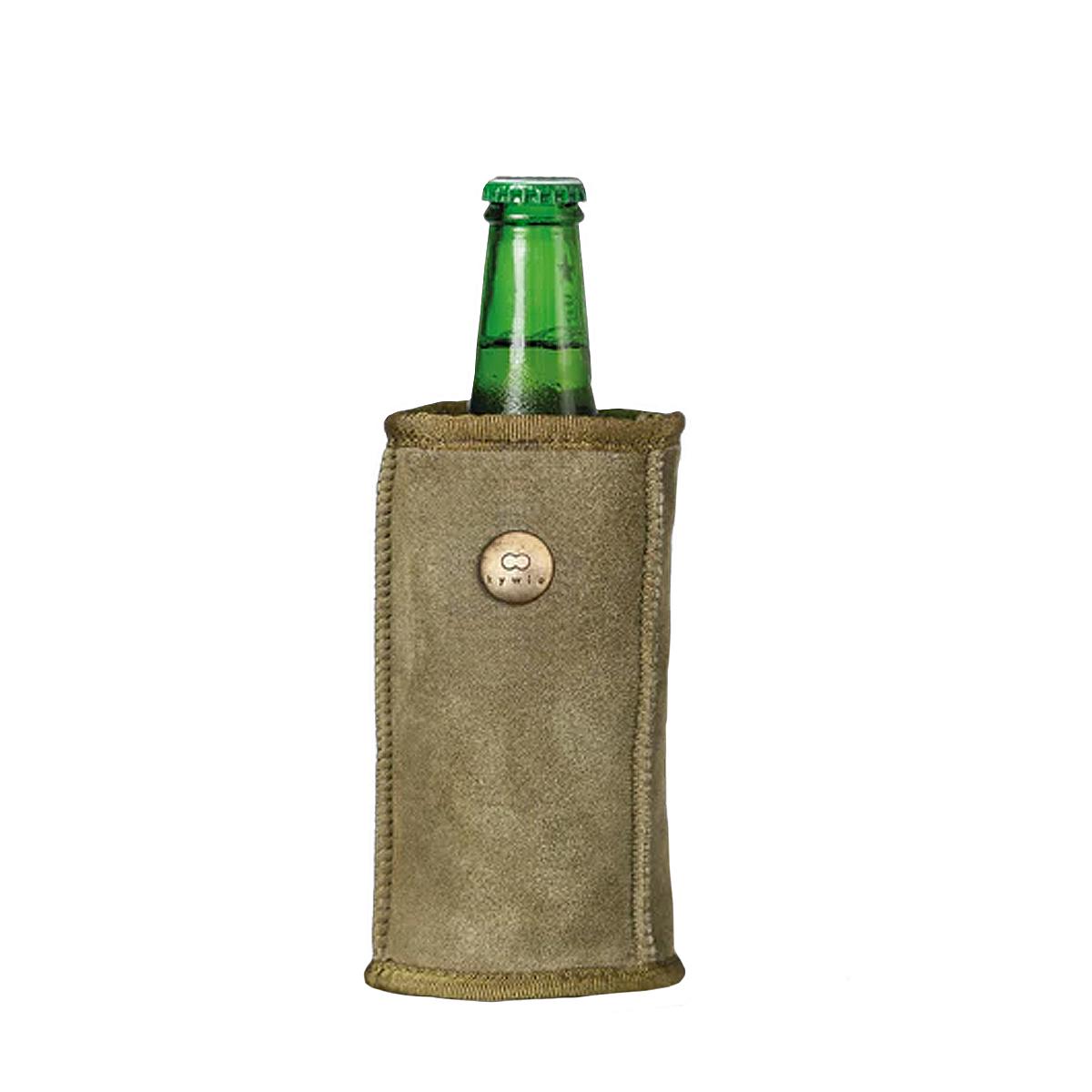 Bier Flaschen Kühler Schaffell Khaki Suede