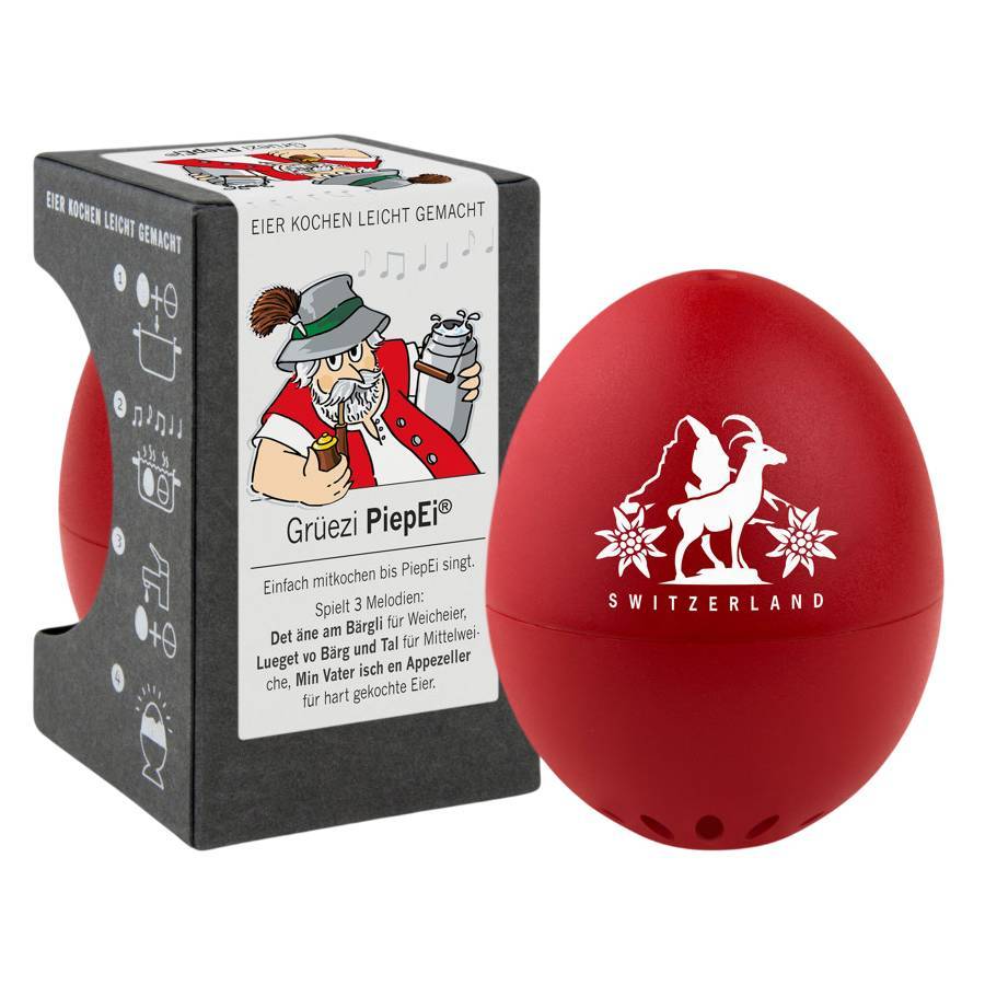 Das Grüezi PiepEi ist die ideale Lösung für perfekt gekochte Eier und bringt Schweizer Tradition in Ihre Küche. Einfach mit den Hühnereiern lagern, gemeinsam in den Kochtopf legen und warten, bis die passende Melodie erklingt. So gelingt jedes Frühstücksei auf den Punkt. Das PiepEi spielt drei verschiedene Schweizer Klassiker für die unterschiedlichen Härtegrade wie "Det äne am Bergli" für weiche Eier, "Lueget vo Bärg und Tal" für mittelweiche Eier und "Min Vater isch en Appezeller" für harte Eier. Ein unterhaltsames und funktionales Gadget, das in keiner Küche fehlen sollte!