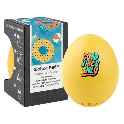 Das Good Vibes PiepEi sorgt für perfekt gekochte Eier und bringt musikalische Freude in Ihre Küche. Einfach mit den Hühnereiern lagern, gemeinsam in den Kochtopf legen und warten, bis die passende Melodie erklingt. So gelingt jedes Frühstücksei auf den Punkt. Das PiepEi spielt drei verschiedene Melodien für die unterschiedlichen Härtegrade wie "Love Me Do" für weiche Eier, "The Entertainer" für mittelweiche Eier und "Oh Happy Day" für harte Eier. Ein unterhaltsames und funktionales Gadget, das in keiner Küche fehlen sollte!