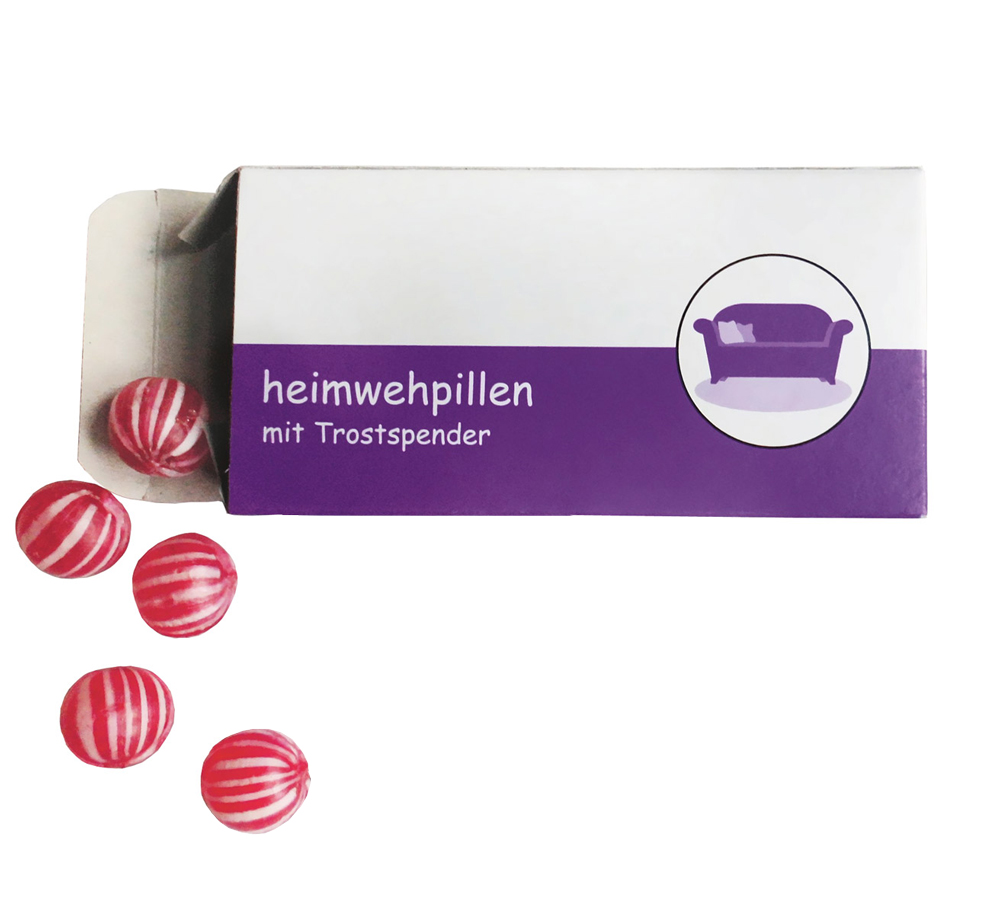 Falls Sie einmal das Heimweh plagt, haben Sie mit den Heimwehpillen immer das richtige Gegenrezept parat! Denn diese innovative Geschenkidee überzeugt nicht nur durch ihren süssen Geschmack, sondern enthält auch noch eine originelle Anleitung zum Wohlfühlen.