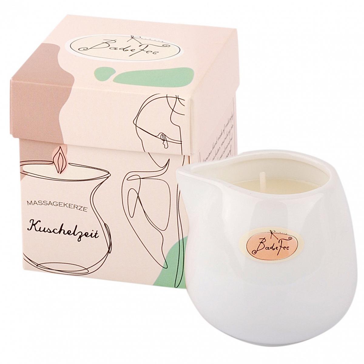 Zeit zu Zwei, Kuschelzeit, Massagezeit! Da kommt die Badefee Massagekerze Kuschelzeit genau richtig. Eine edle Komposition aus zart schmelzender Kakaobutter, pflegender Bio-Sheabutte, süssem Mandelöl und dem geheimnisvollen Duft der frischen Malve. Der perfekte Startschuss für einen entspannenden und romantischen Abend zu Zweit.