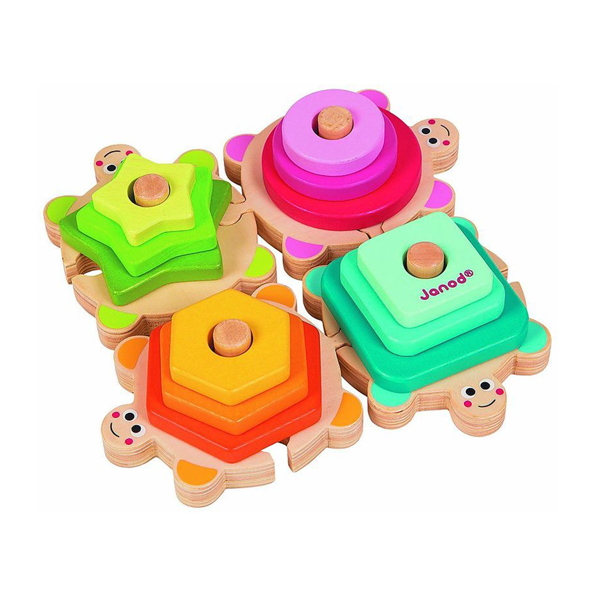 Dieses liebevoll gestaltete Lernspiel aus natürlichen Materialien ist bestens für Kleinkinder geeignet, die beginnen, ihre Welt entdecken und verstehen zu wollen. Die Holzschildkröten sind mit Wasserfarben bemalt und gesundheitlich absolut unbedenklich. Sie fördern die Geschicklichkeit und Konzentration von Kindern und bringen spielerisch das Verständnis für Farben und Formen bei. Die Schildkröten können einfach zu unterschiedlichen Formen zusammengesetzt werden. Die Auflege-Hölzer haben insgesamt vier verschiedene Formen und Grundfarben. Dank der abgerundeten Kanten besteht keine Verletzungsgefahr.
