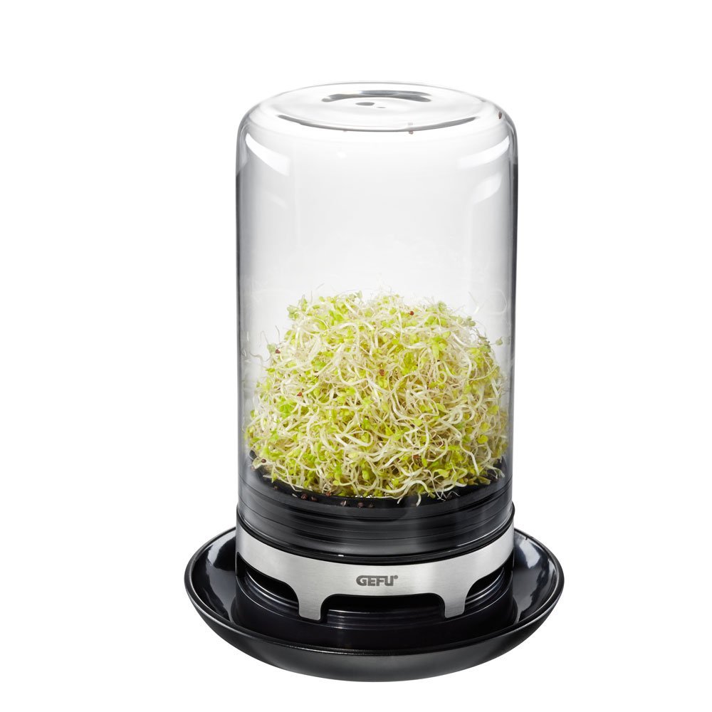 Zur modernen, leichten Küche gehören knackige Salate mit frischen Sprossen heutzutage einfach dazu. Mit dem Sprossenglas BIVITA von Gefu besitzt du dein eigenes kleines Gewächshaus und kannst jederzeit zum Beispiel aus Alfalfa-, Mungbohnen- oder Radieschensamen leckere Sprossen ziehen.