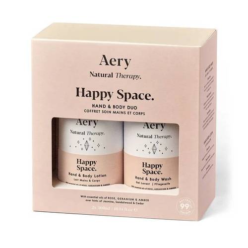 Gönn dir eine Auszeit mit dem Happy Space Hand & Body Wash and Lotion Set von Aery Living. Die Kombination aus sanfter Reinigung und pflegender Feuchtigkeit versprüht mit ihrem Duft aus Rose, Geranie und Amber eine wohlige Atmosphäre – perfekt für dein Badezimmer oder als stilvolles Geschenk.