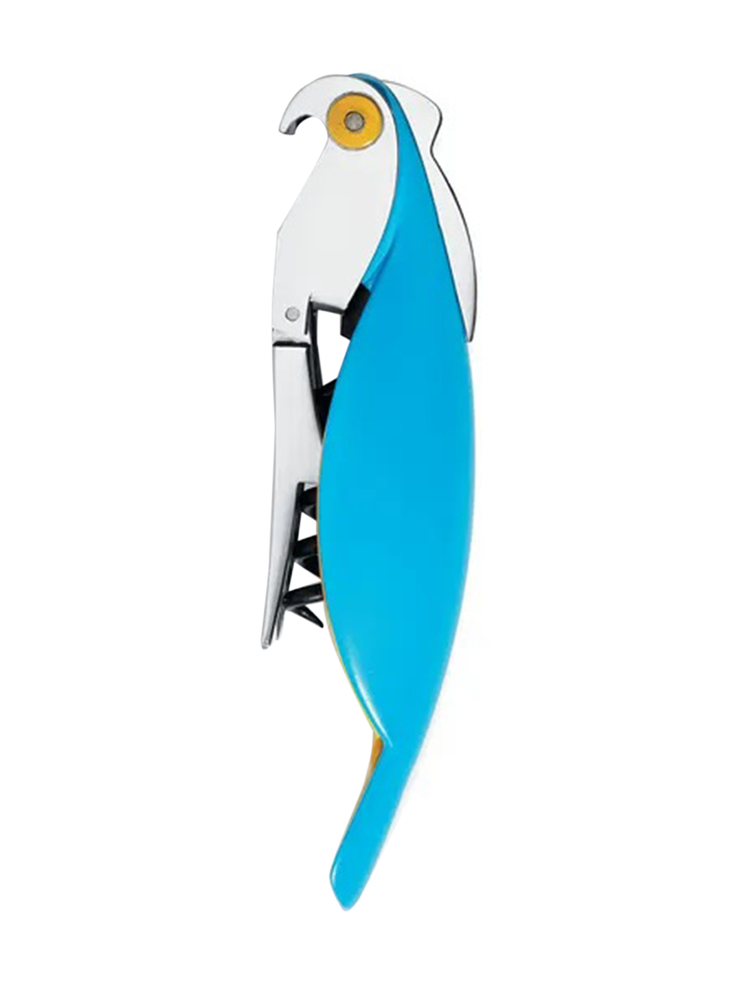 Dieser elegante Sommelier-Korkenzieher von der beliebten Marke ALESSI ist in einem Papagei Design. Er ist aus Aluminiumguss und PC gefertigt und von Pulltaps lizenziert. Der praktische Deckelhalter ermöglicht es Ihnen, die Flasche in einem Winkel von 90 ° zu drehen. Dank seiner kompakten Größe passt dieser Weinöffner auch in kleine Küchenräume, vervollständigt aber trotzdem jeden Tisch schön.