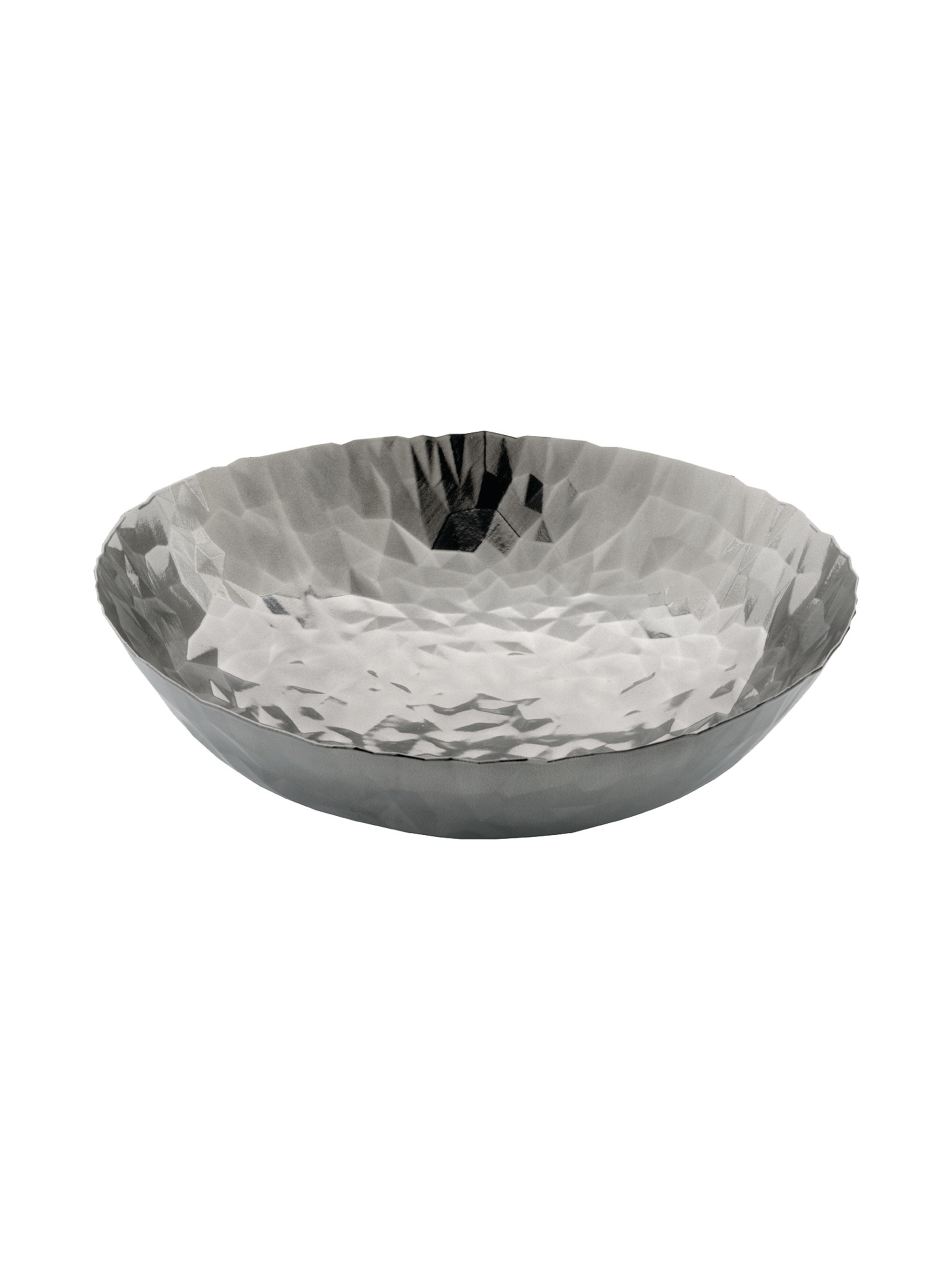Die Schale Joy n.1 ⌀ 37 cm ist ein einzigartiges Designobjekt aus Edelstahl, das von der Designerin Claudia Raimondo entworfen wurde. Sie wird durch ein ausgeklügeltes Verfahren im Form gepresst, was ihr eine besondere Textur verleiht. Das Design der Schale ist facettenreich und verändert sich je nach Lichteinfall.