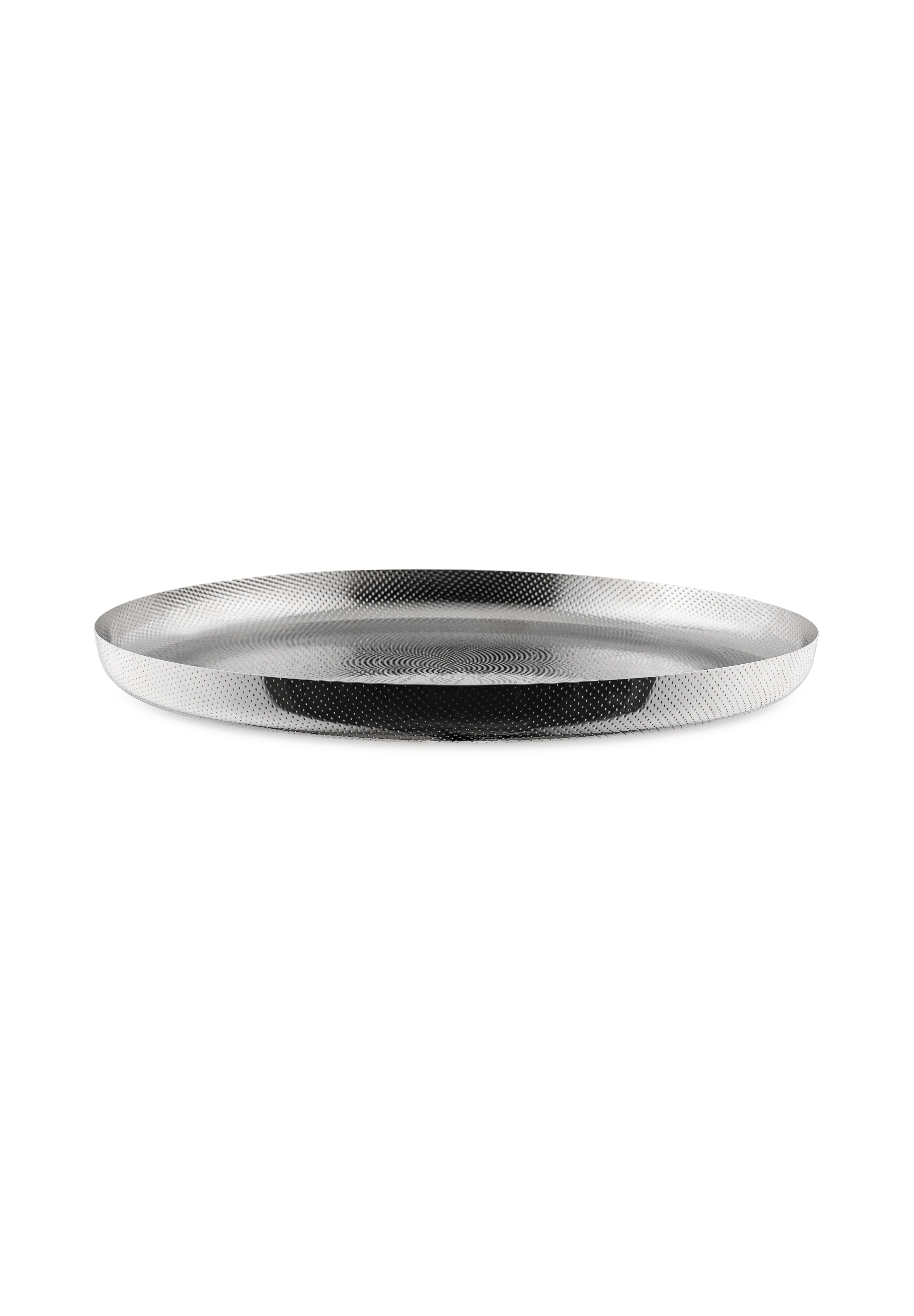 Das runde Tablett von Jasper Morrison besticht durch seine minimalistischen Linien und die granulierte Oberfläche, die in Kombination mit der schwarzen Farbe eine einzigartig elegante Optik schafft. Es ist aus epoxidharzlackiertem Stahl gefertigt. Die schlichten Formen des Tablett-Designs sind zeitlos und passen zu jeder Einrichtung.