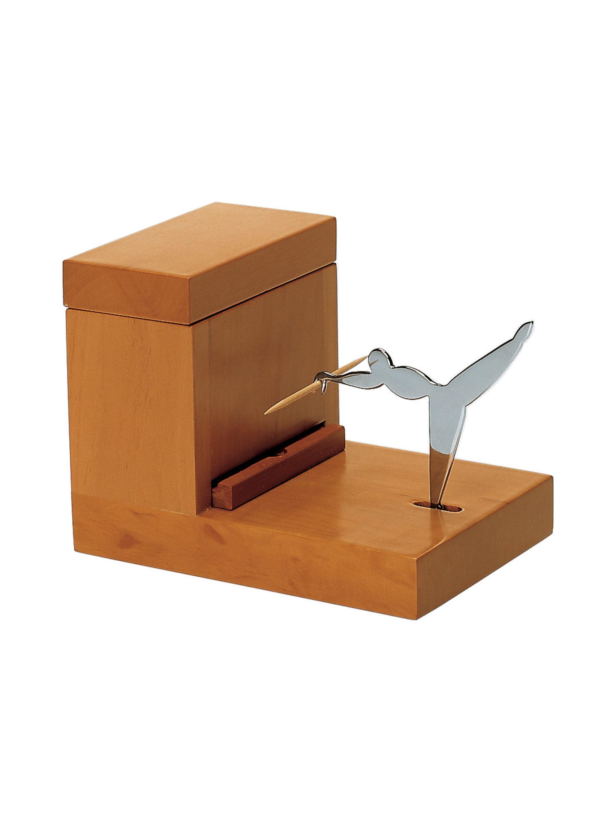Der Alessi Zahnstocherbehälter wurde von der Designerin Andrea Branzi entworfen. Der schwere, hochwertige Behälter ist aus Birnbaumholz und Edelstahl gefertigt. Diese elegante Kombination macht ihn zu einem echten Hingucker.
