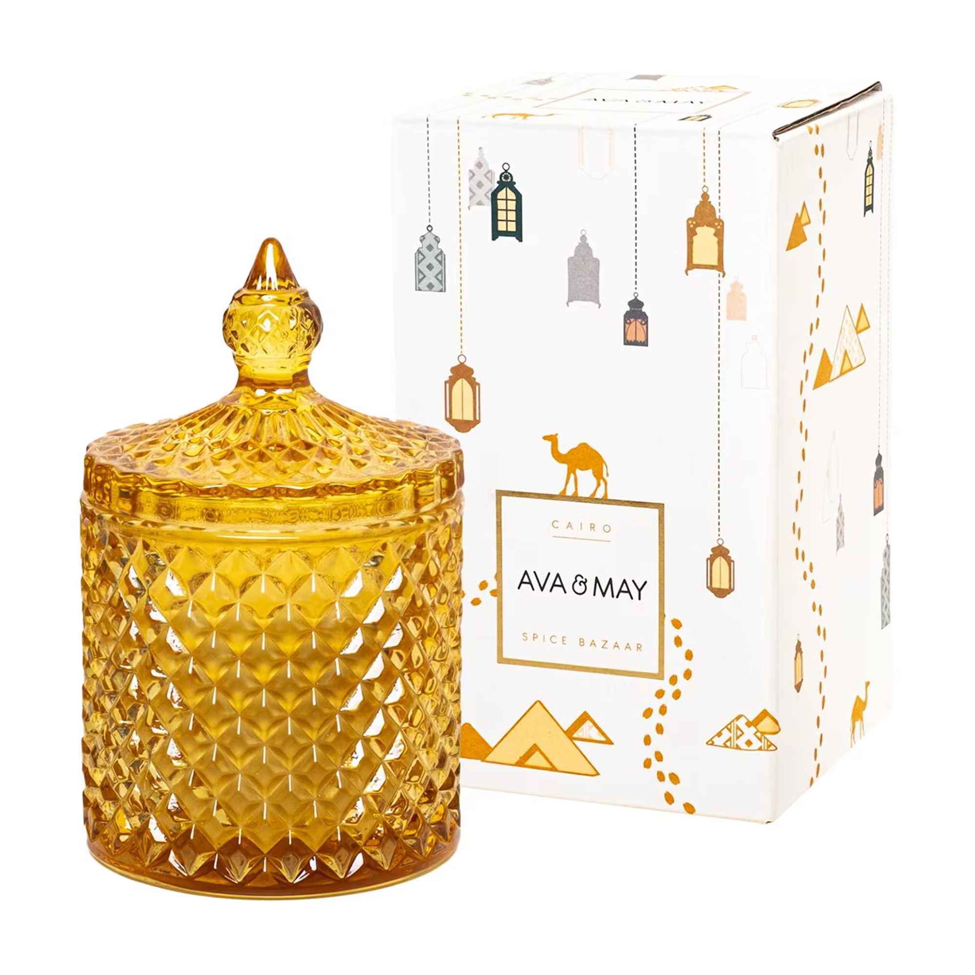 Entdecke die AVA & MAY Duftkerze Cairo in strahlendem Gelb und lasse Dich von ihrem luxuriösen Duft verzaubern. Mit den warmen Noten von Tonkabohne, Safran und Amber schafft sie eine elegante und einladende Atmosphäre in Deinem Zuhause. Ihr stilvolles Design macht sie zu einem perfekten Begleiter für entspannte Abende und besondere Momente.