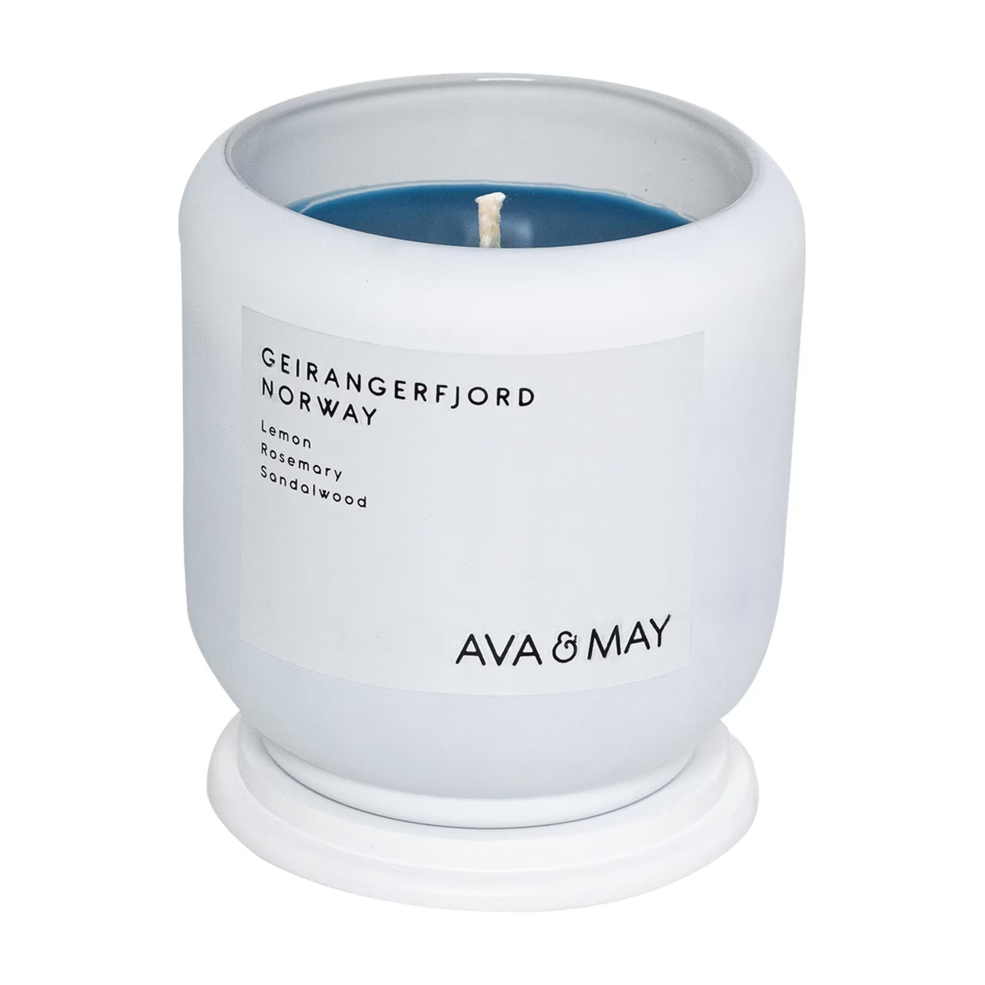 Tauche ein in die atemberaubende Schönheit Norwegens mit unserer Duftkerze Geirangerfjord. Inspiriert vom UNESCO-Weltnaturerbe, fängt diese Kerze die magische Atmosphäre des smaragdgrünen Fjords, umgeben von steilen Klippen und dichten Wäldern, ein. Die frischen Noten von Zitrone und aromatischem Rosmarin verschmelzen mit warmem Sandel- und Zedernholz, um eine harmonische und erfrischende Duftkomposition zu schaffen. Das dunkelblaue Wachs im schlichten Glas erinnert an die Tiefe und Klarheit des Fjords und verleiht deinem Raum eine natürliche Frische.