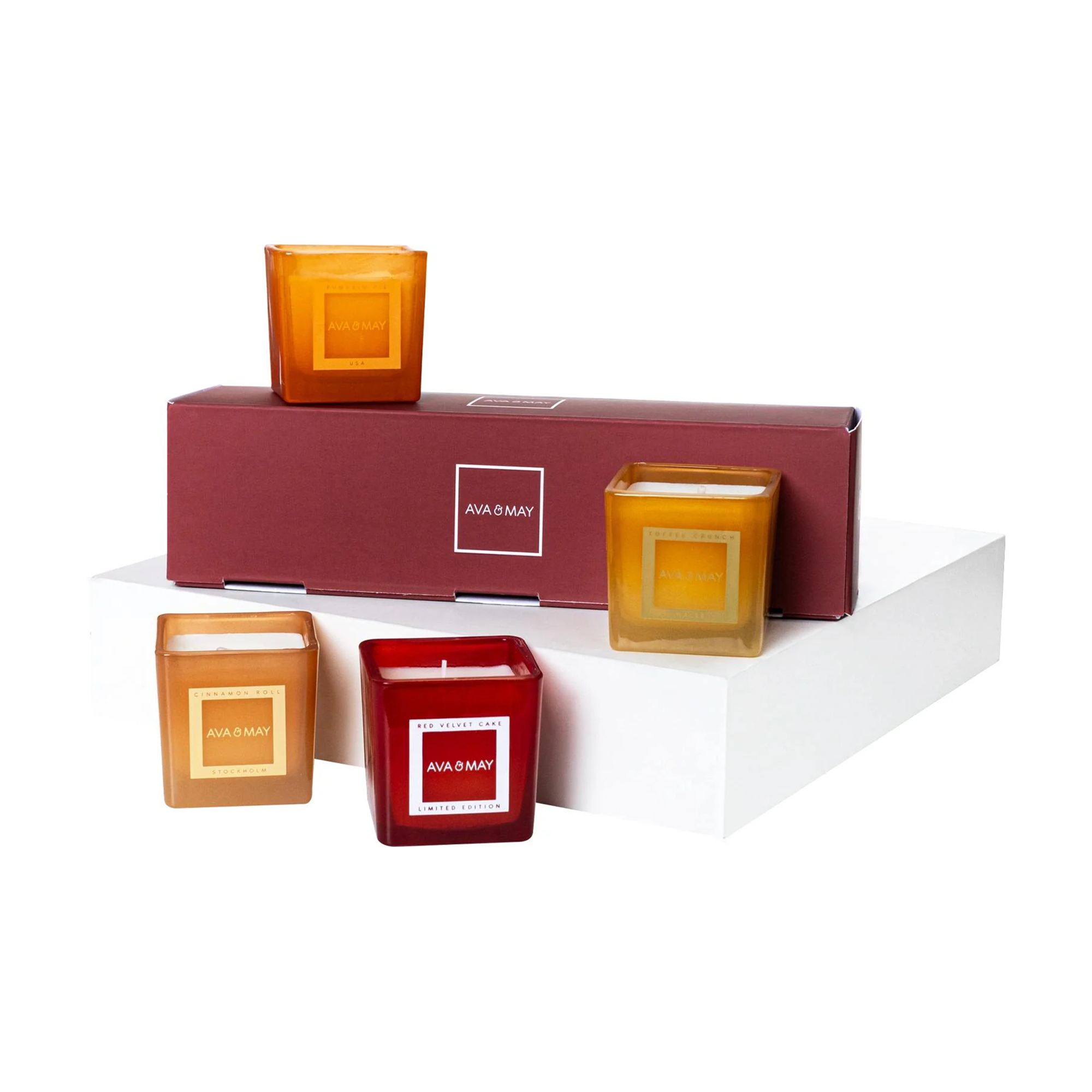 - Vier köstliche Düfte: Pumpkin Pie, Toffee Crunch, Red Velvet, Cinnamon Roll