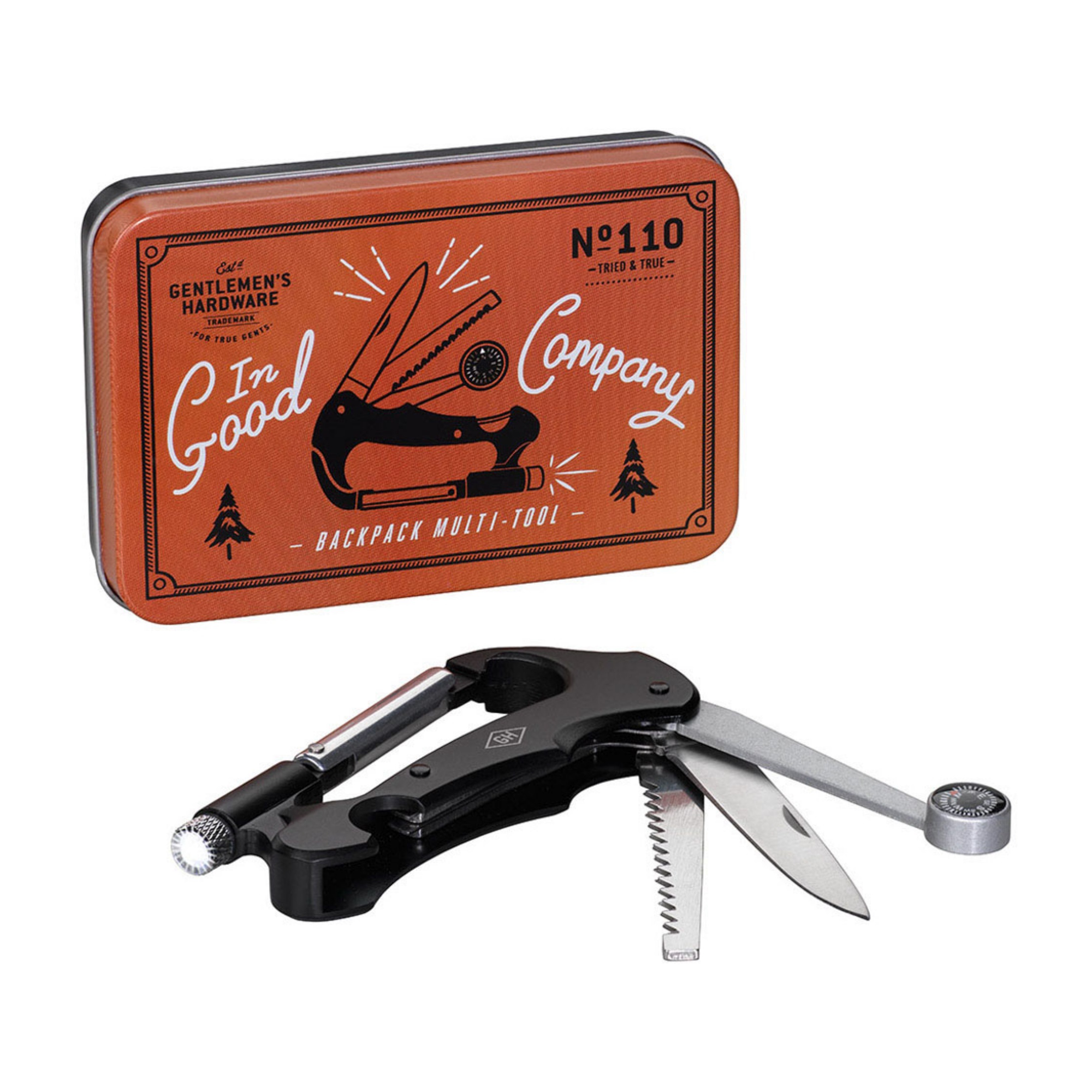 • Vielseitiges Multi-Tool für unterwegs mit Kompass, Taschenmesser, Säge und LED-Licht