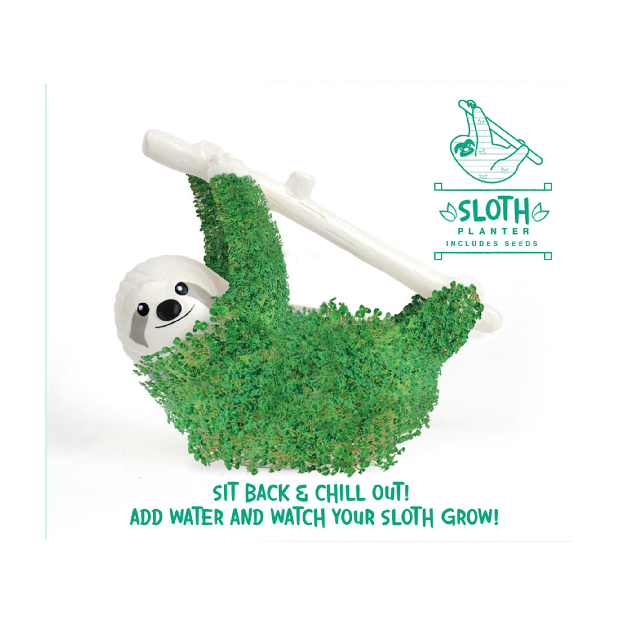 - Set aus Faultier und Chia-Samen für kreatives Anbauen