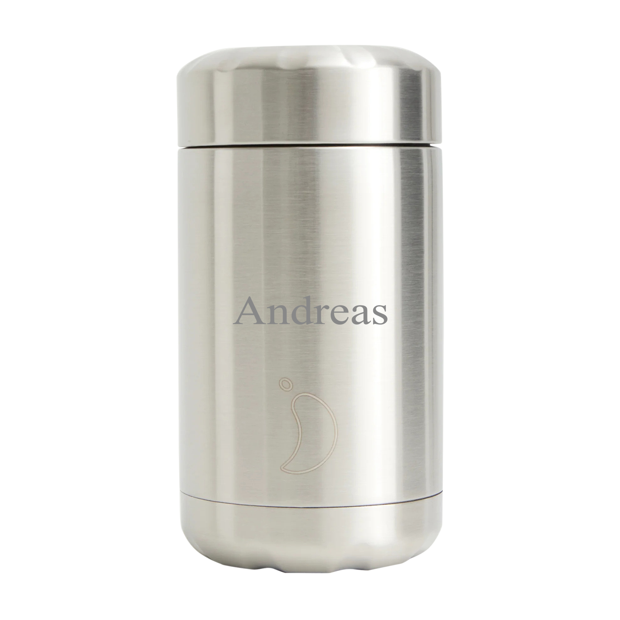 Entdecke den Personalisierbaren Chilly's Food Pot 500ml – ideal für unterwegs, um Mahlzeiten stilvoll und nachhaltig zu geniessen. Dieser hochwertige Edelstahlbehälter hält deine Speisen bis zu 6 Stunden heiss oder kalt, egal bei welchem Wetter. Das auslaufsichere Design bewahrt Geschmack und Frische, ohne Kondensation am Behälter, und sorgt dafür, dass deine Mahlzeiten sicher transportiert werden. Dank der doppelwandigen Vacuum-Isolation bleiben deine Speisen länger frisch, während der luftdichte Deckel für eine sichere Aufbewahrung sorgt. Perfekt geeignet für Suppen, Salate, Früchte oder heisse Haferbrei, bietet dieser Behälter eine praktische Lösung für unterwegs.
