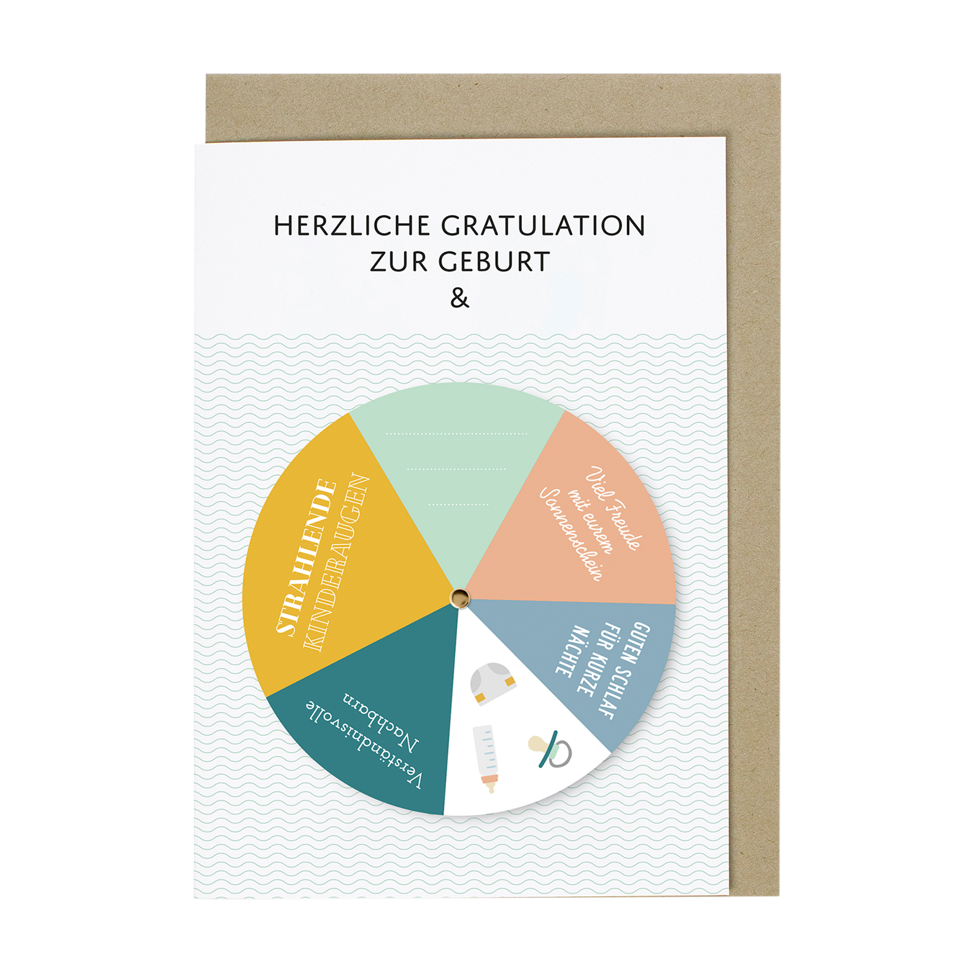 Faltkarte A6 mit Drehrad Wunschrad - Geburt