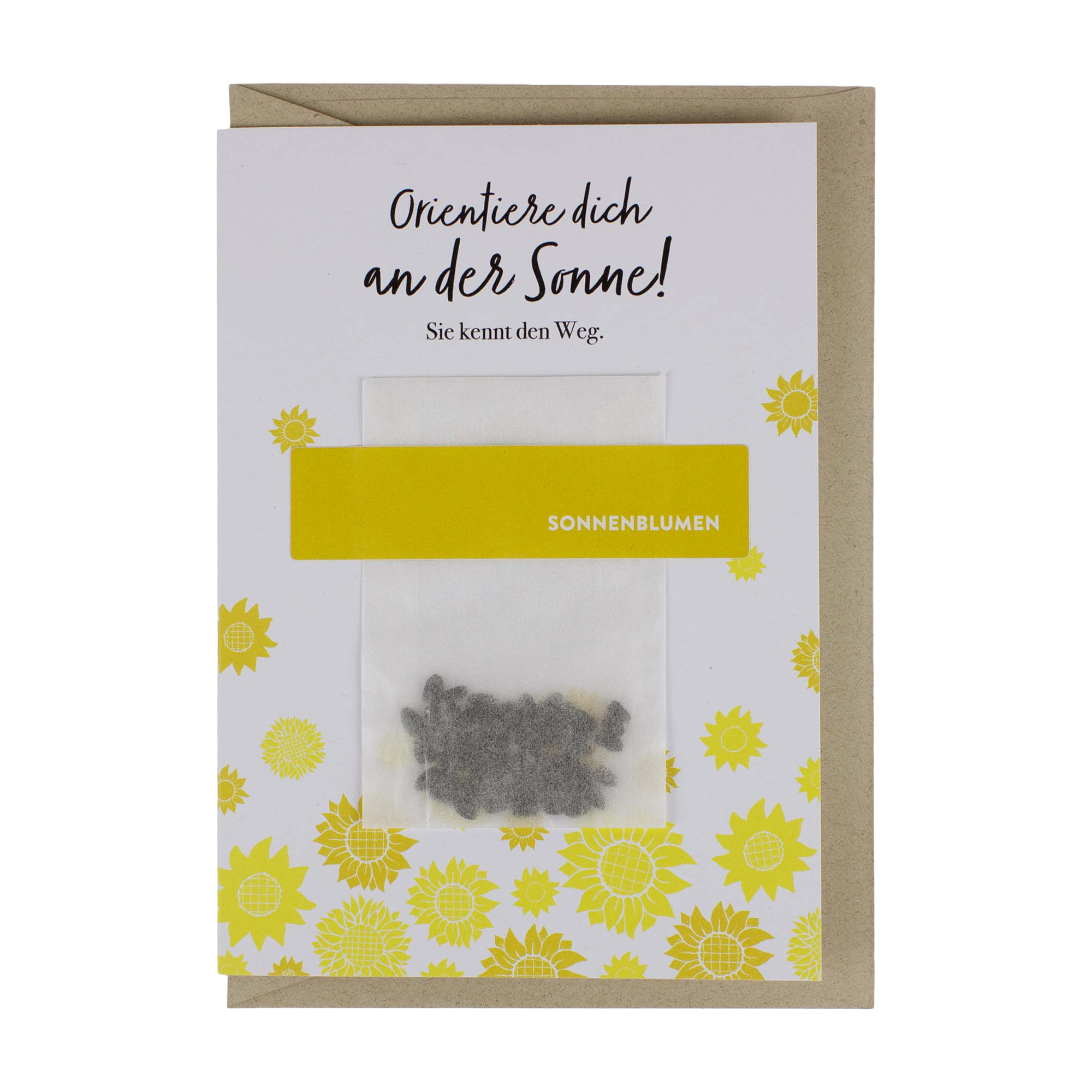 Faltkarte A6 mit Pflanzensamen Saatgut - Sonnenblumen