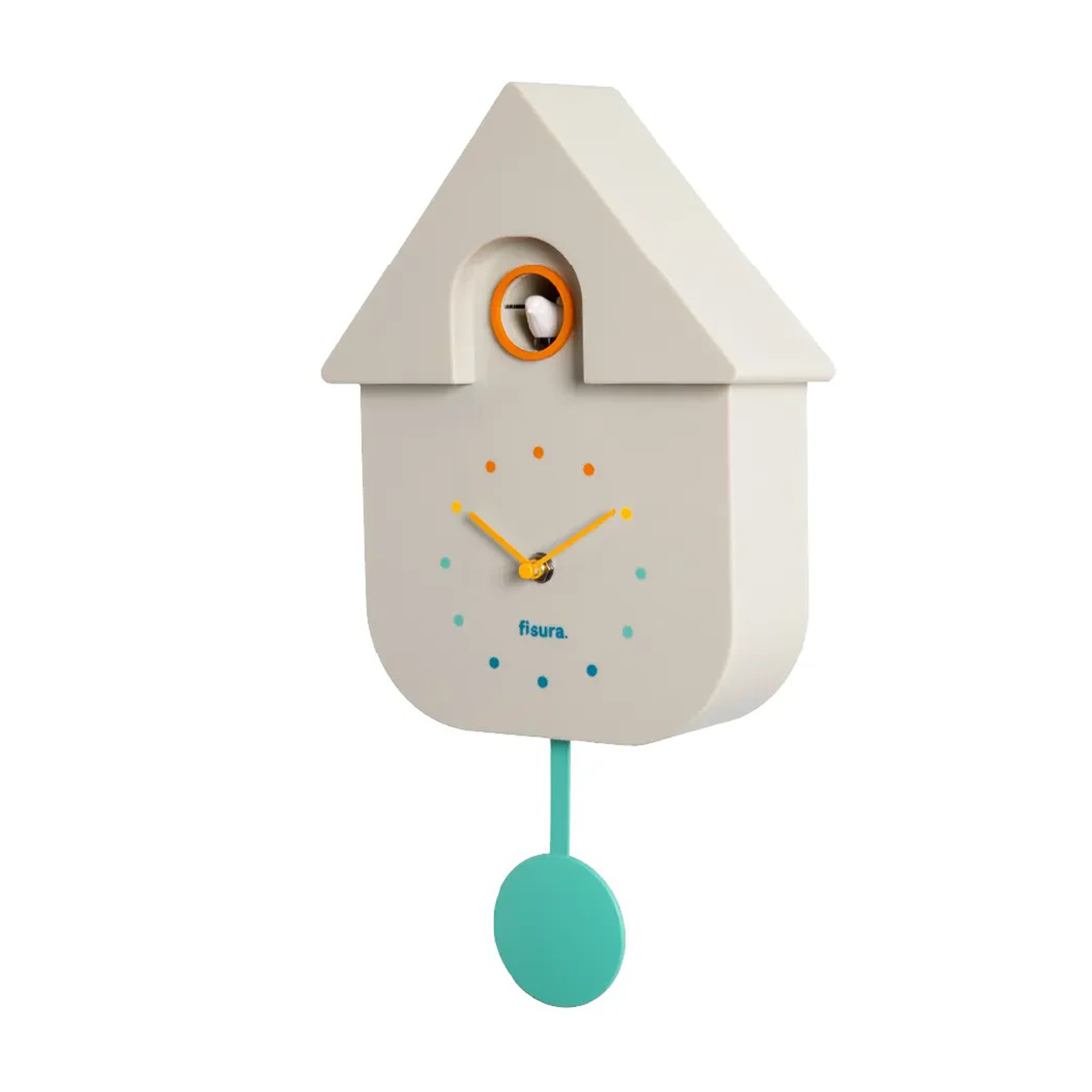Die Kombination aus weissem Gehäuse, farbenfrohem Zifferblatt und mintgrünem Pendel bringt Frische und Originalität in jeden Raum. Egal ob Wohnzimmer, Schlafzimmer, Büro oder das Spielzimmer der Kleinen – diese Kuckucksuhr setzt einen fröhlichen, modernen Akzent.