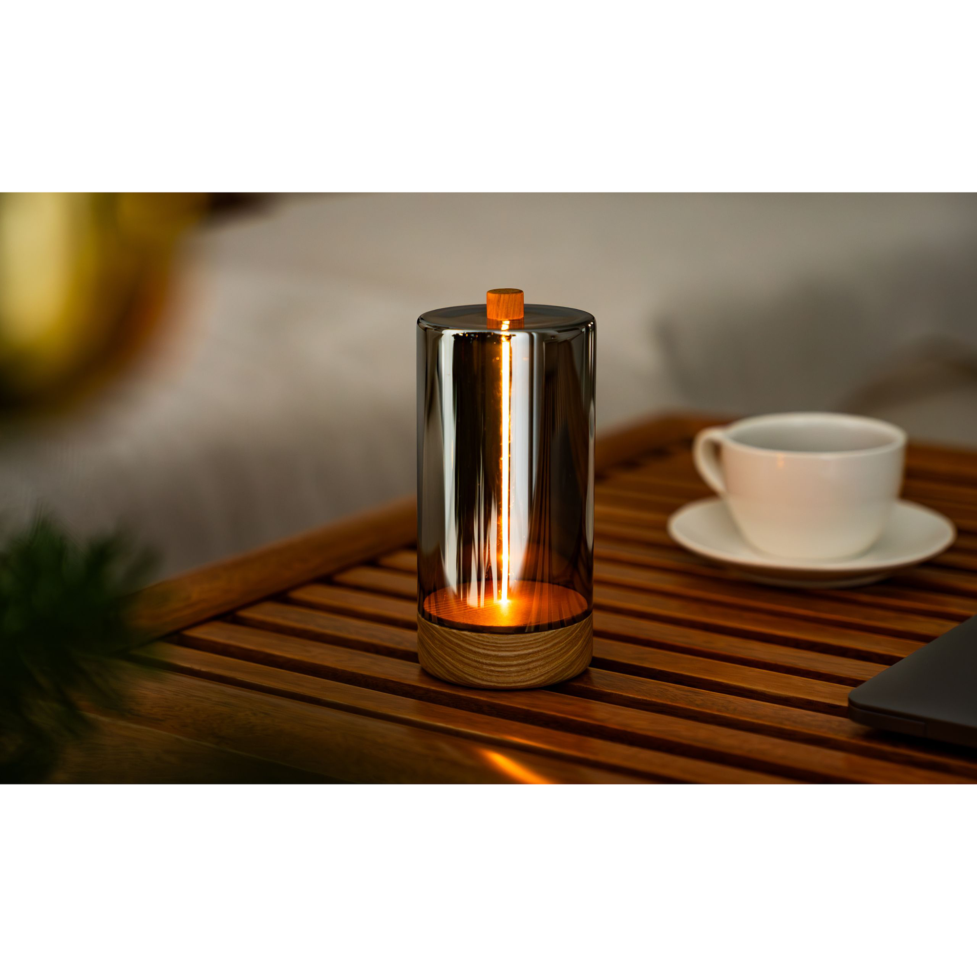 Das schlanke, zylindrische Design betont vertikale Bewegungen und erinnert an den Tagesverlauf der Sonne. Durch eine subtile magnetische Bewegung aktiviert, verwandelt sich das Licht in ein ruhiges, fast meditatives Erlebnis – ganz ohne Schalter, nur durch Berührung. Es lädt zum Innehalten ein und schafft eine intime Verbindung zwischen Objekt und Nutzer.