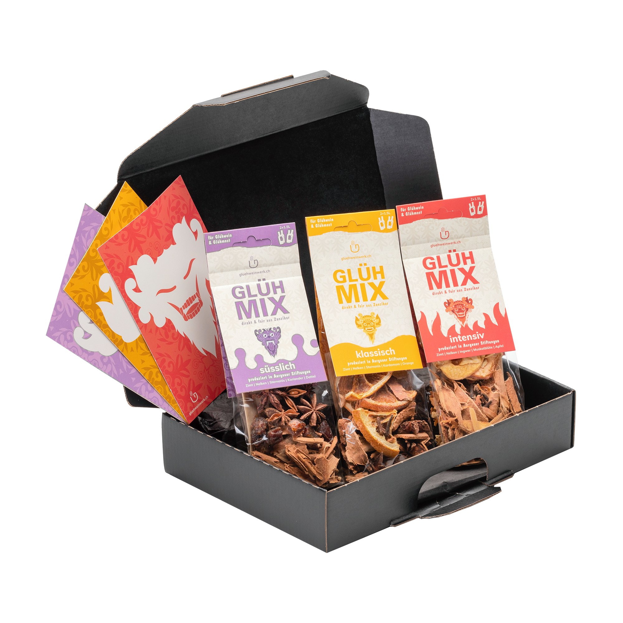 - 3 hochwertige GLÜHMIX-Sorten: klassisch, süsslich, intensiv