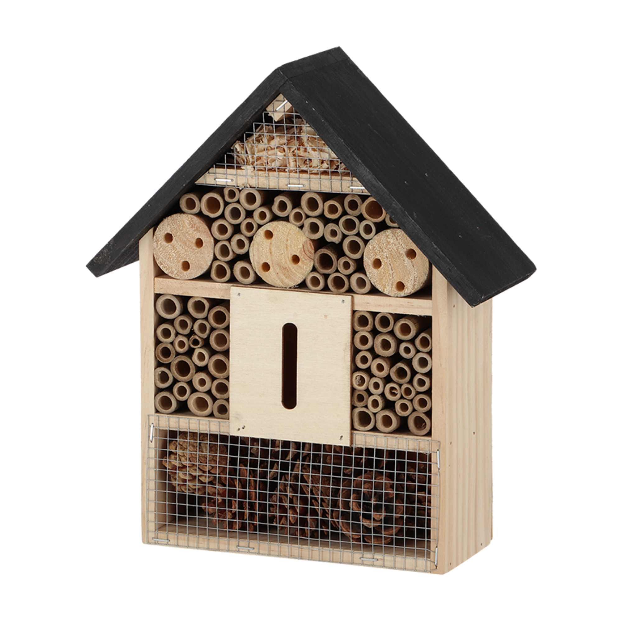 Unterstütze die Natur in deinem Garten mit unserem Insektenhotel L. Es bietet wichtigen Schutz und Nistmöglichkeiten für Solitärbienen, Schmetterlinge und andere nützliche Insekten, die für ein gesundes Gartenökosystem unerlässlich sind. Das Haus ist einfach aufzuhängen und schafft einen sicheren Rückzugsort, damit die Insekten overwinter und sich vermehren können. Mit nachhaltigen Materialien wie Fichte, Bambus, Tannenzapfen, Sperrholz und Eisen ist es sowohl robust als auch umweltfreundlich.