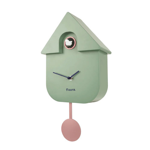 • Design: Minimalistische Kuckucksuhr in Hausform mit mintgrünem Finish