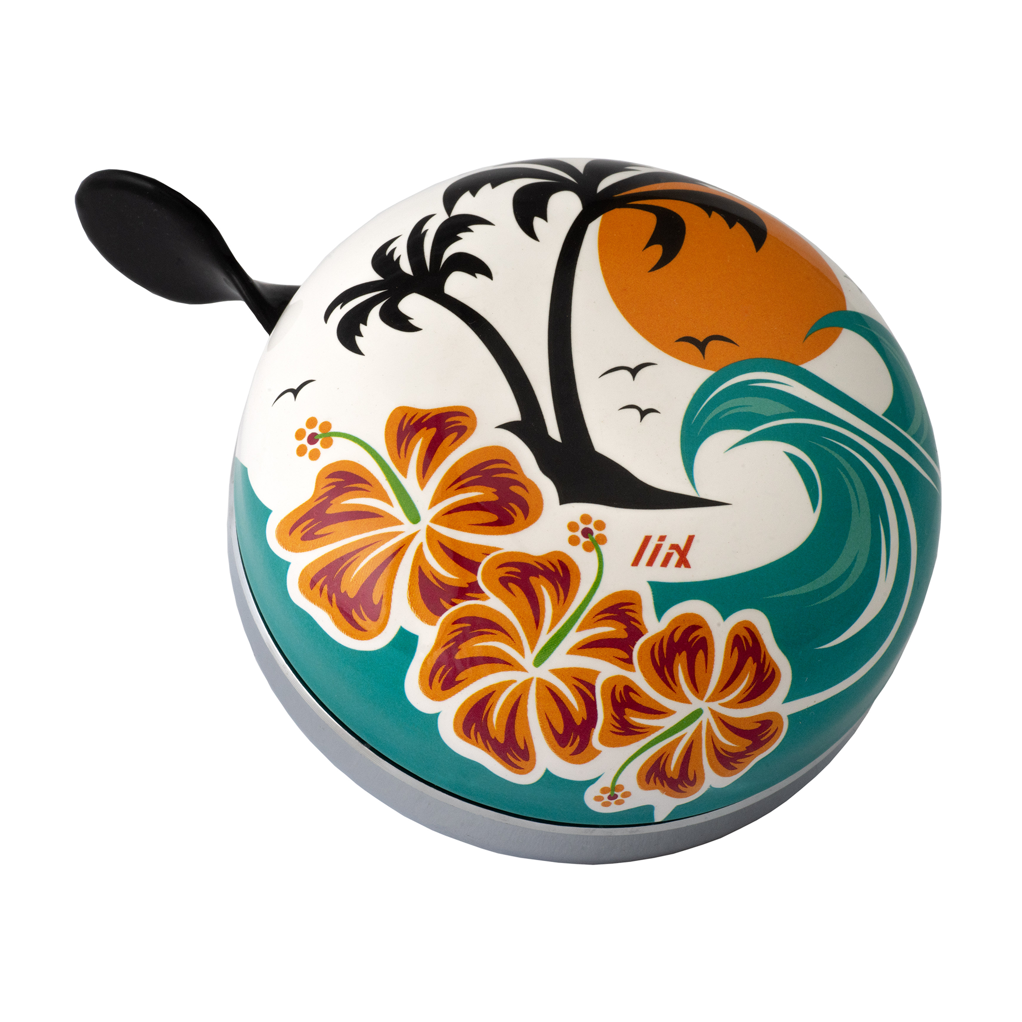 Mit der Liix „Hawaii“ Fahrradklingel bringst du sofort Sommerstimmung an deinen Lenker. Das grosse, runde Design und der fröhliche Ding-Dong-Klang machen diese Klingel zu einem echten Hingucker, der sich von anderen abhebt.